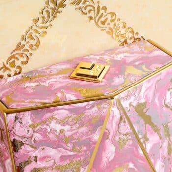 Where bold expression meets regal luxury โ a pink marble masterpiece crowned in gold