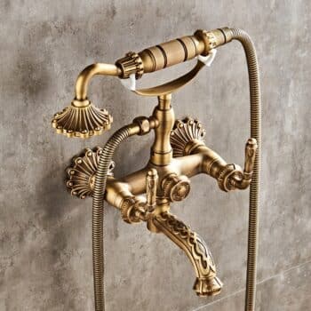 This classic gold bathtub faucet and shower set is really eye-catching, majestic and the best choice for Your royal bathroom, if there is also a freestanding bathtub.