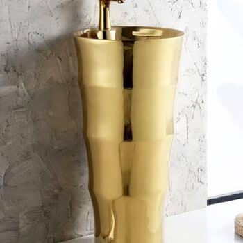 Crafted from high-density ceramic and finished with a premium gold plating glaze, it combines durability with an ultra-reflective shine. The tall pedestal hides all plumbing inside, giving your space a clean, minimalist, and hotel-style appearance.