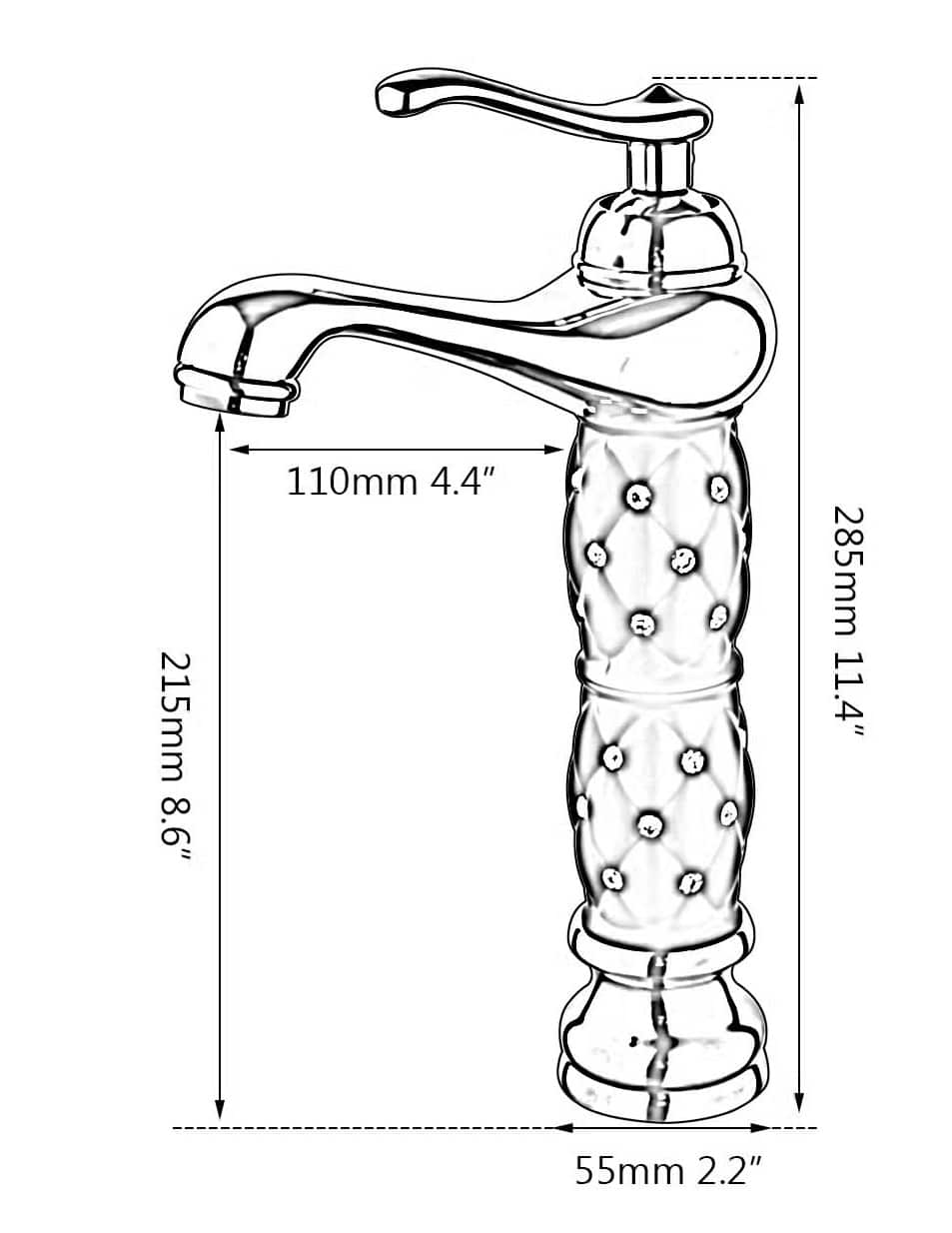 - Water outlet height 215 mm / 8.6 inch