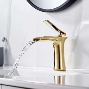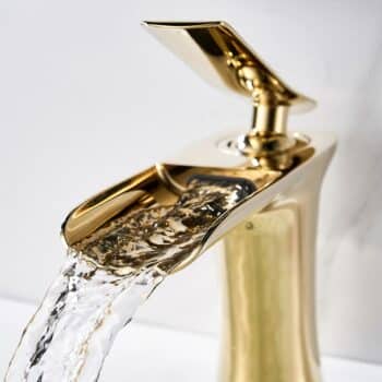 Elevate your bathroom with this elegant gold waterfall faucet, designed for those who value both aesthetics and performance. Featuring a gently curved body and an open-spout design, the faucet delivers a smooth waterfall-style water flow that adds a spa-like feel to any sink or vanity. The thick gold-plated surface offers a brilliant mirror finish that is scratch-resistant, tarnish-proof and guaranteed to maintain its shine for years.