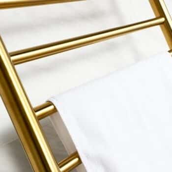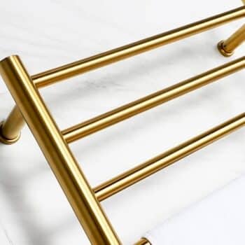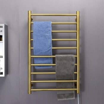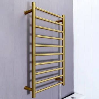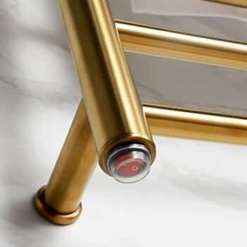 This modern electric towel heater rack is the needed upgrade for luxury bathroom. Designed with elegance and practicality, it quickly warms and dries towels while adding a touch of luxury to your modern bathroom. With a simple waterproof on/off switch and efficient heating performance, itโs both functional and stylish. Made of durable stainless steel with a scratch- and water-resistant gold plated finish, it ensures long-lasting shine and reliability. Can be switched on constantly, heating temperature approximately 50ยฐC (122ยฐF), power consumption 50-60W/hour .