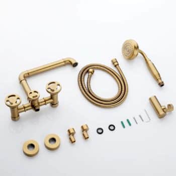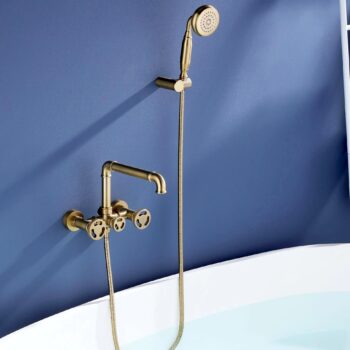 Bring timeless character and refined craftsmanship to your bathroom with the Retro Industrial Dual Handle Gold Bathtub Faucet. Inspired by classic industrial design, this wall-mounted faucet features exposed pipe styling, dual control handles, and a solid brass construction for an authentic yet luxurious look.